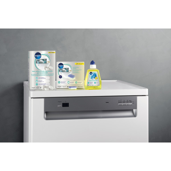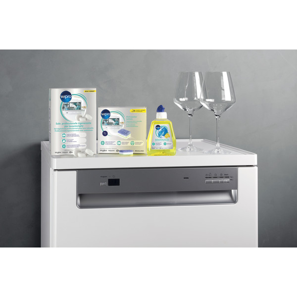De nye profesjonelle oppvasktablettene med antioksiderende effekt fra Wpro er en perfekt løsning for å rengjøre serviset grundig og fjerne gjenstridige flekker. De er velegnet for alle oppvaskmaskiner, sykluser og temperaturer, også de laveste (30 °C). Selve oppvaskmiddelet virker på matrester og vanskelige flekker, slik at du får et rent vaskeresultat. Saltet forebygger kalkdannelse på både servise og oppvaskmaskin. Skyllemiddelet motvirker vannflekker på glass og rustfritt kjøkkenutstyr, slik at det blir skinnende blankt. 24 tabletter gir 24 vasker.
