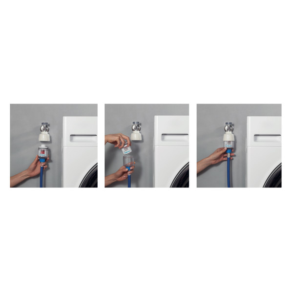 Det profesjonelle CalBlock+-systemet fra Wpro gir høy beskyttelse av husholdningsapparatene dine. Det inneholder polyfosfatkrystaller og et mekanisk filter som effektivt beskytter maskinens innvendige deler (varmeelement, elektrisk ventil, slanger, filtre) mot kalkavleiringer og andre partikler som rust og sand. Det bidrar til å redusere vannets hardhet, slik at du sparer vaskemiddel og oppnår bedre vaskeresultat. Systemet fungerer best ved lave temperaturer (opptil 60 °C). Bytt filter hver 4.–6. måned for optimalt resultat. Velegnet for alle typer vaskemaskiner, vaskemaskiner med tørketrommel og oppvaskmaskiner.